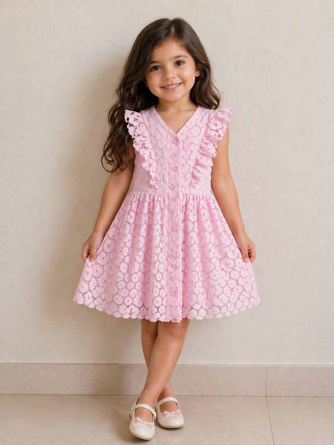 Charming Pink Lace Twirl Dress