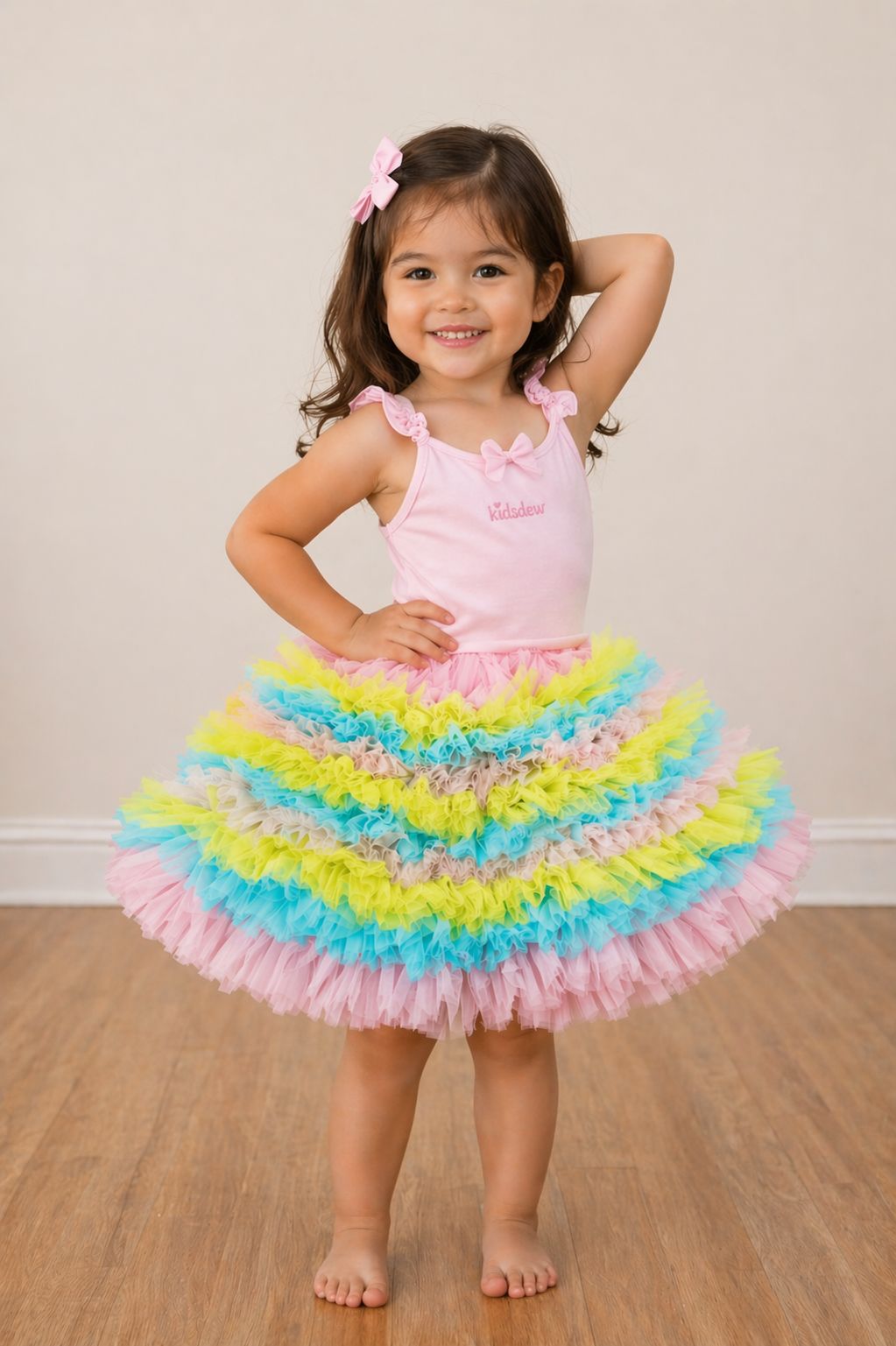 Add a touch of magic to your little one’s wardrobe with the Pastel Dream Tutu Skirt. Designed to make every moment special, this beautifully layered skirt features soft, airy net ruffles in dreamy pastel shades of pink, yellow, blue, and ivory. #RainbowStyle 🎀 #CuteOutfits 🥰